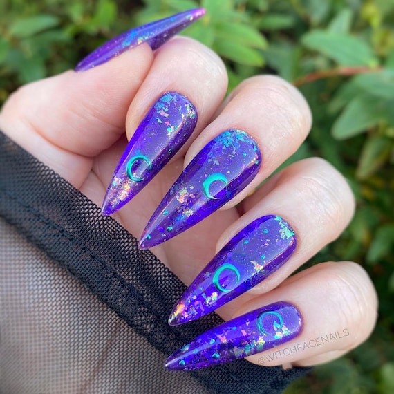 Purple Moon Press On Nails Customisable Iridescent Etsy Uk